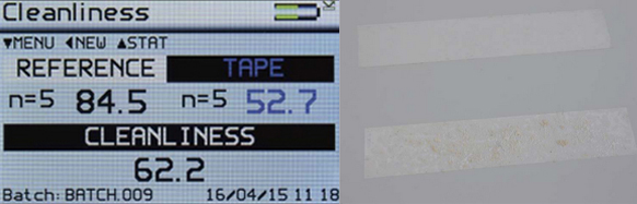 - Measurements are made of the reference material and then of the tape, cleanliness is calculated automatically.