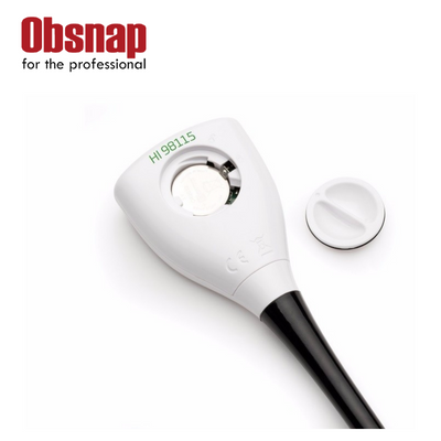 Designed for durability and portability, the tester includes the HI1271 replaceable gel-filled pH electrode with a slim 8 mm sensing tip for easy measurement in narrow containers. The automatic shut-off feature can be set to 8 or 60 minutes to conserve battery life, or disabled if continuous operation is required. Powered by a CR2032 battery, the HI98115 provides approximately 1000 hours of continuous use, with a low battery indicator to prevent unexpected downtime. The instrument is supplied in a rugged plastic carrying case with calibration and cleaning solutions for immediate use.
