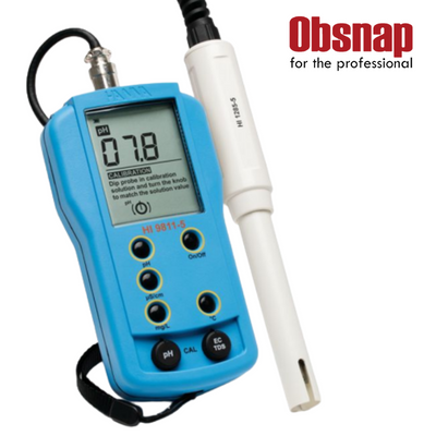 A single probe in the affordable, waterproof HI9811-5 portable meter simultaneously measures pH, conductivity (EC), total dissolved solids (TDS), and temperature (°C).