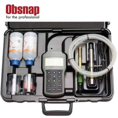 The supplied HI763123 platinum four-ring probe connects via a waterproof quick-connect DIN connector and integrates an internal temperature sensor for accurate compensation across the full range. When paired with the HI605453 stainless steel flow cell, it enables continuous flow measurement, essential for preventing CO₂ contamination errors in high purity systems. The meter supports user profiles (up to 10), log-on-demand and interval logging up to 1000 readings, and USB transfer using HI92000 software. Its IP67 waterproof body, graphic LCD with backlight, and thermoformed rugged carrying case make it suitable for both field and laboratory use.