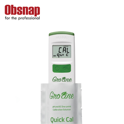 Ordering Information HI98318 GroLine EC/TDS meter is supplied with a protective cap, (4) HI50036 Quick Cal Calibration Sachets (20 ml), (1) CR2032 battery, instruction manual, and quality certificate.