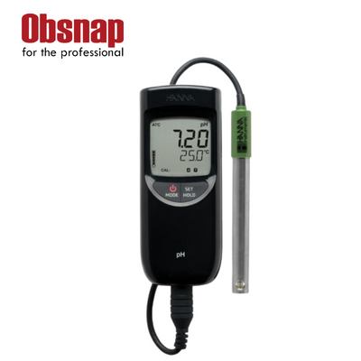 - Temperature displayed in °C or °F along with pH reading