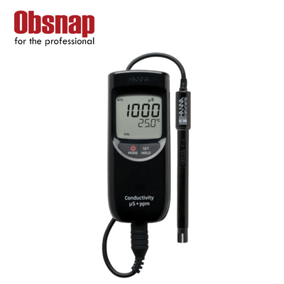 Two-ring Probe – The HI763063 is a two-pole probe that comes with the HI99300, offering an accurate solution for low range EC and TDS readings. The probe features a built-in temperature probe to allow for temperature compensated readings.