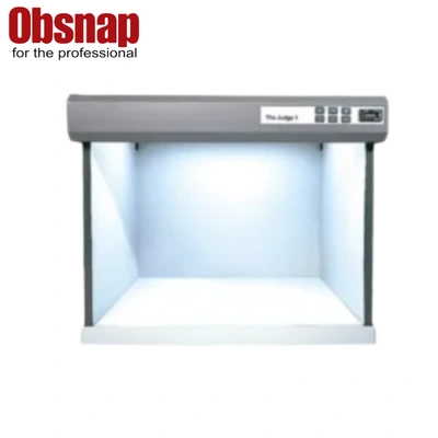X-Rite Judge II is a professional color evaluation light booth designed to deliver accurate and consistent visual color assessment across various industries, including design, manufacturing, and quality control. Its compact yet robust construction allows it to fit easily into offices, design studios, and production environments without compromising performance. Equipped with five different light sources—Daylight (D50, D65, or D75), Cool White Fluorescent, Incandescent (Illuminant A), Ultraviolet, and commercial fluorescent options (U30, U35, or TL84)—the Judge II enables users to evaluate color appearance under multiple standardized lighting conditions, ensuring reliable visual comparisons.