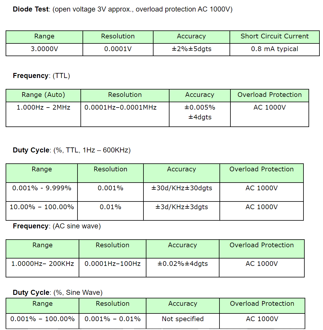 | 6.0000V | 0.0001V | ±0.2%±40dgts | ±0.6%±40dgts |